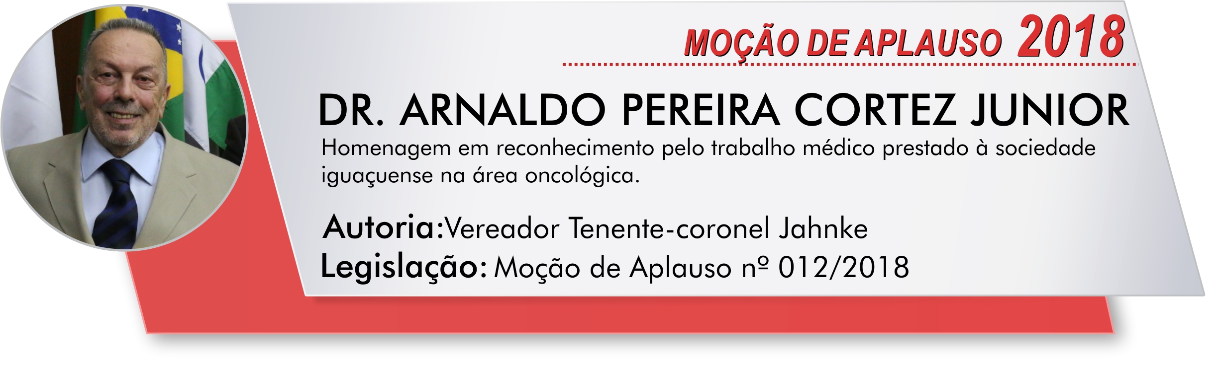 Homenagem em reconhecimento pelo trabalho médico prestado à sociedade iguaçuense na área oncológica.