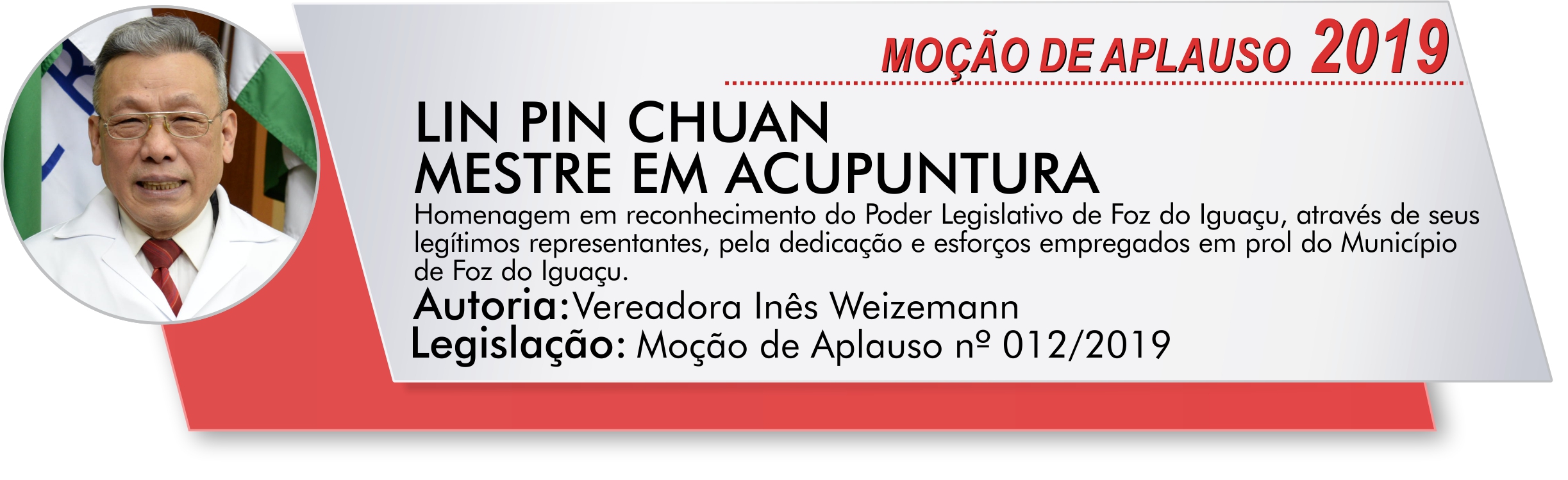 Homenagem em reconhecimento do Poder Legislativo de Foz do Iguaçu, através de seus legítimos representantes, pela dedicação e esforços empregados em prol do Município de Foz do Iguaçu.