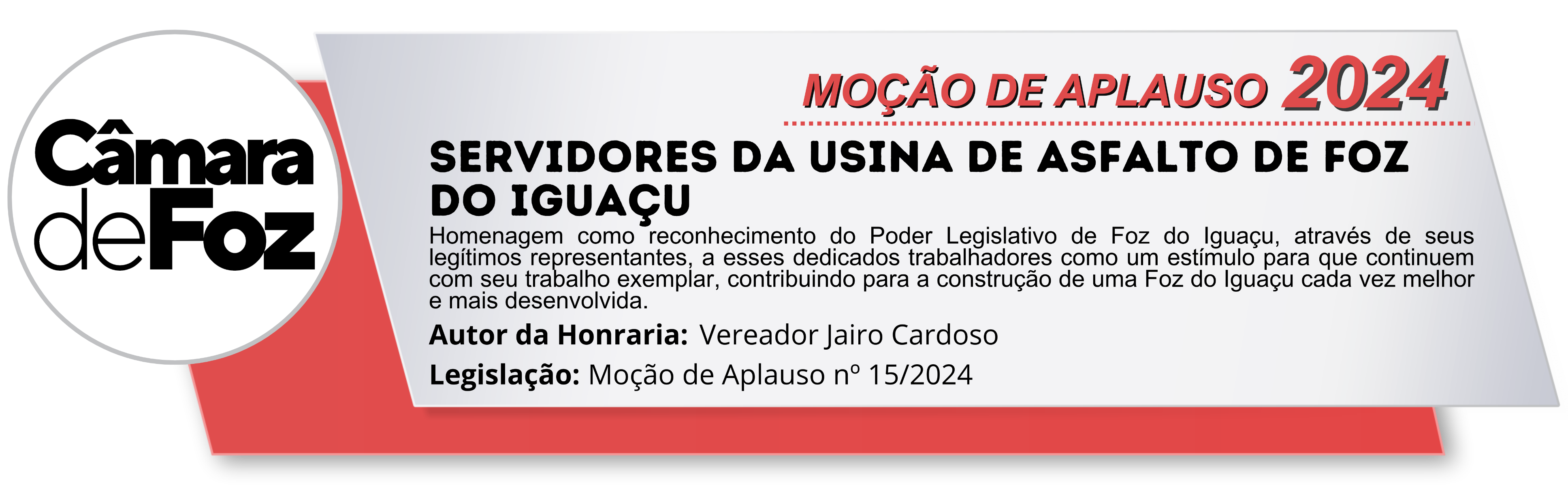 Homenagem como reconhecimento do Poder Legislativo de Foz do Iguaçu, através de seus legítimos representantes, a esses dedicados trabalhadores como um estímulo para que continuem com seu trabalho exemplar, contribuindo para a construção de uma Foz do Iguaçu cada vez melhor e mais desenvolvida.
