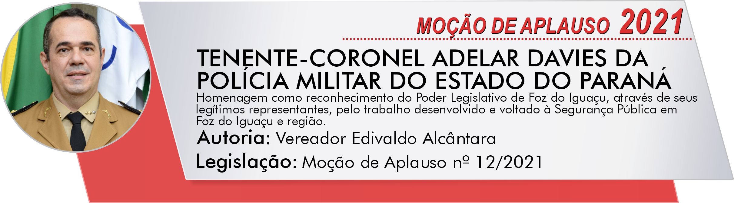 Homenagem como reconhecimento do Poder Legislativo de Foz do Iguaçu, através de seus legítimos representantes, pelo trabalho desenvolvido e voltado à Segurança Pública em Foz do Iguaçu e região.