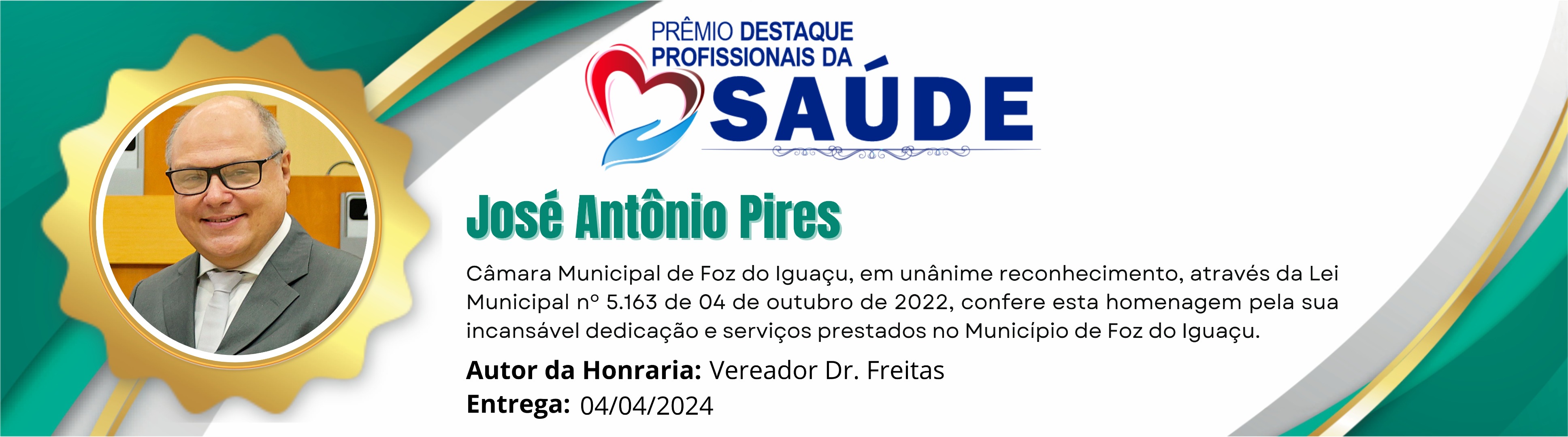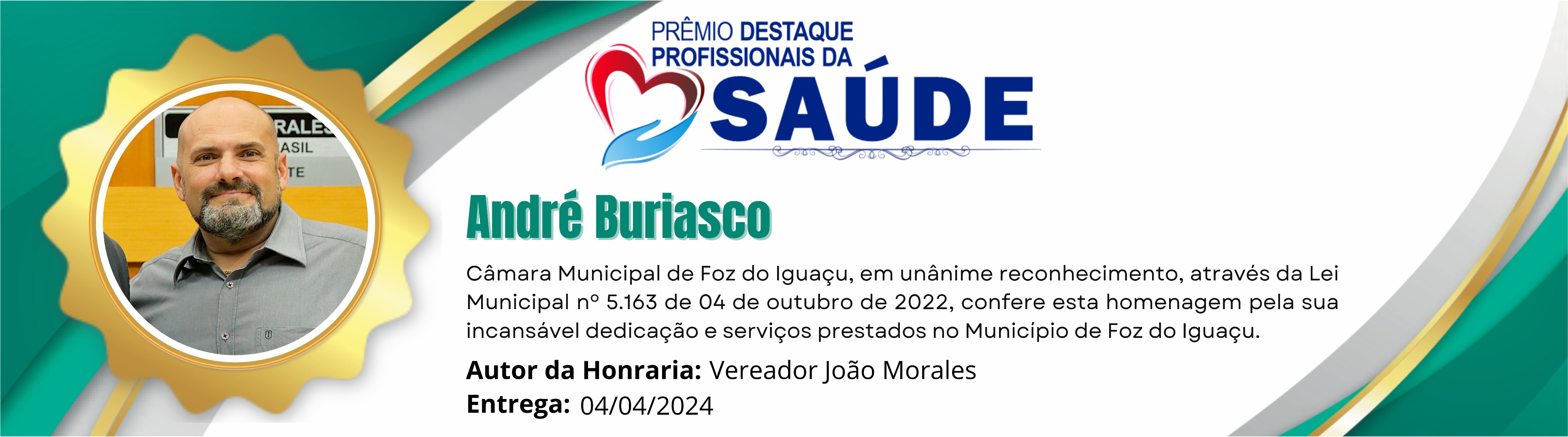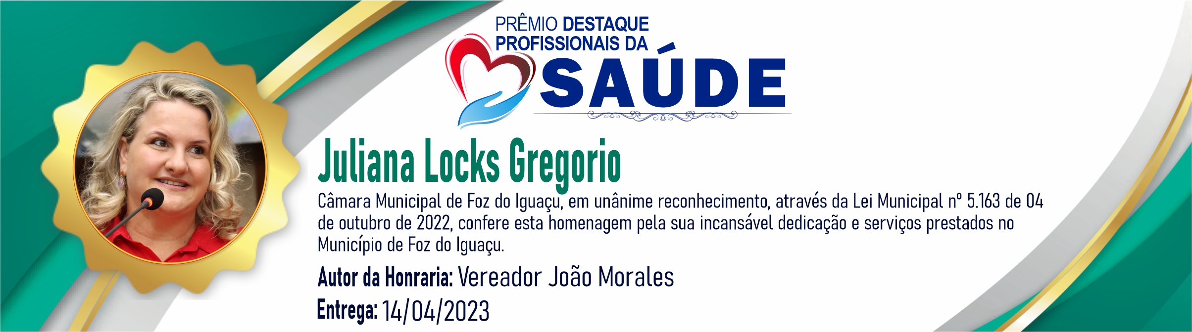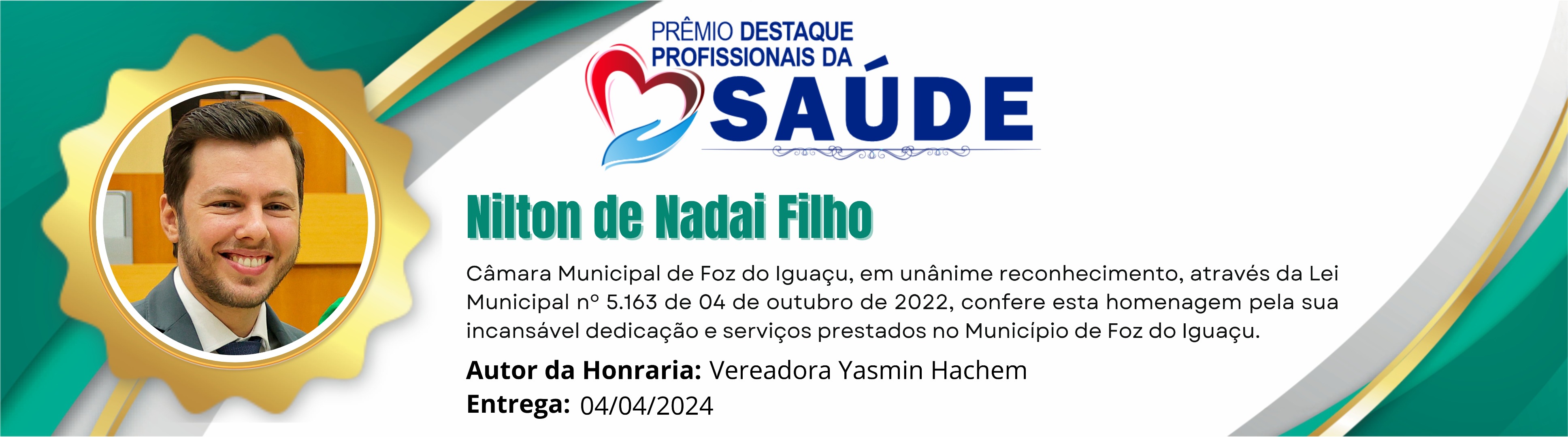 Câmara Municipal de Foz do Iguaçu, em unânime reconhecimento, através da Lei Municipal nº 5.163 de 04 de outubro de 2022, confere esta homenagem pela incansável dedicação e serviços prestados no Município de Foz do Iguaçu.