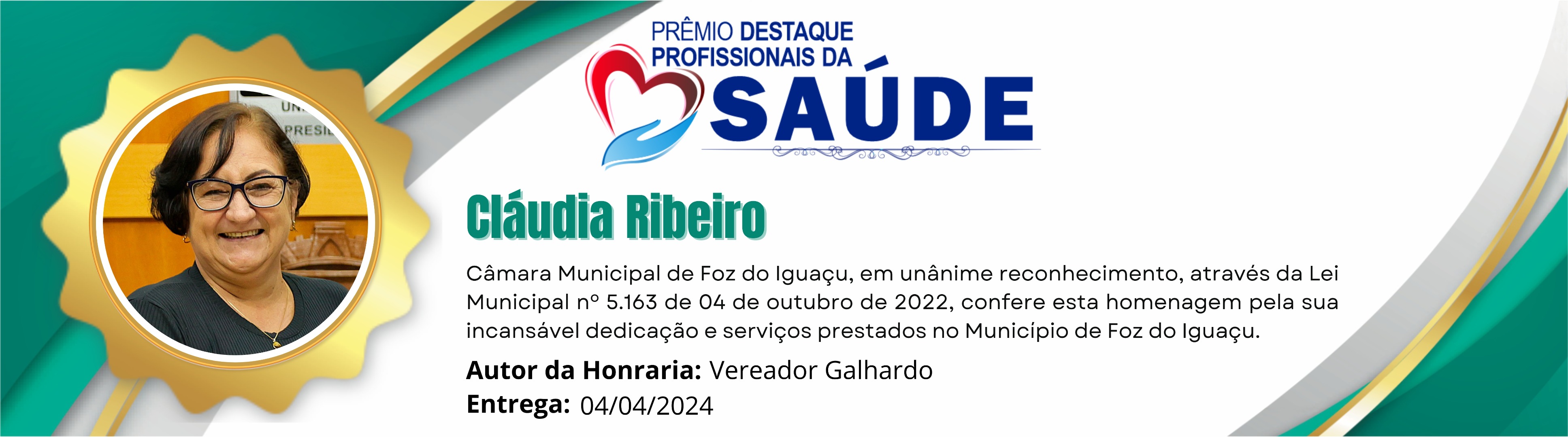 Câmara Municipal de Foz do Iguaçu, em unânime reconhecimento, através da Lei Municipal nº 5.163 de 04 de outubro de 2022, confere esta homenagem pela sua incansável dedicação e serviços prestados no Município de Foz do Iguaçu.