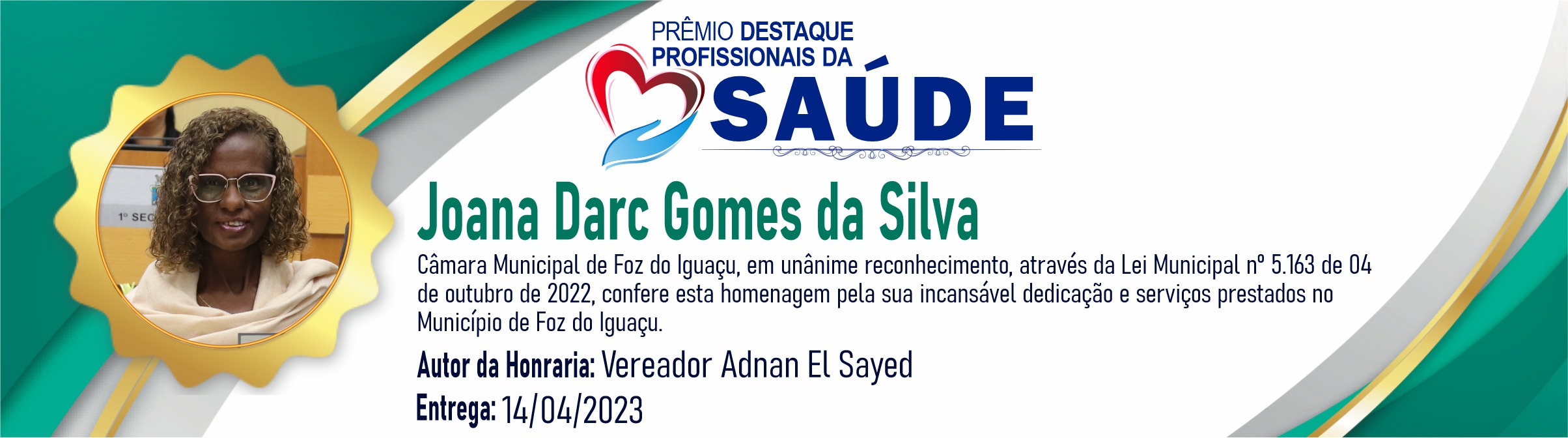 Câmara Municipal de Foz do Iguaçu, em unânime reconhecimento, através da Lei Municipal nº 5.163 de 04 de outubro de 2022, confere esta homenagem pela sua incansável dedicação e serviços prestados no Município de Foz do Iguaçu.