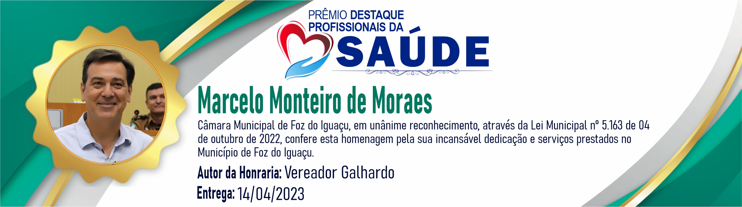 Câmara Municipal de Foz do Iguaçu, em unânime reconhecimento, através da Lei Municipal nº 5.163 de 04 de outubro de 2022, confere esta homenagem pela sua incansável dedicação e serviços prestados no Município de Foz do Iguaçu.