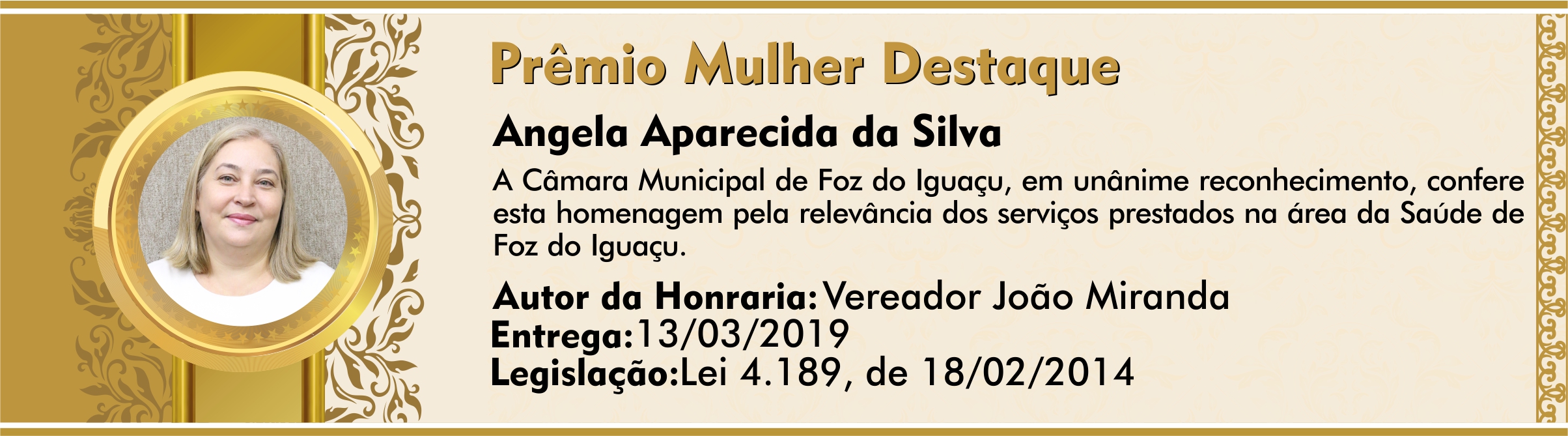 A Câmara Municipal de Foz do Iguaçu, em unânime reconhecimento, confere