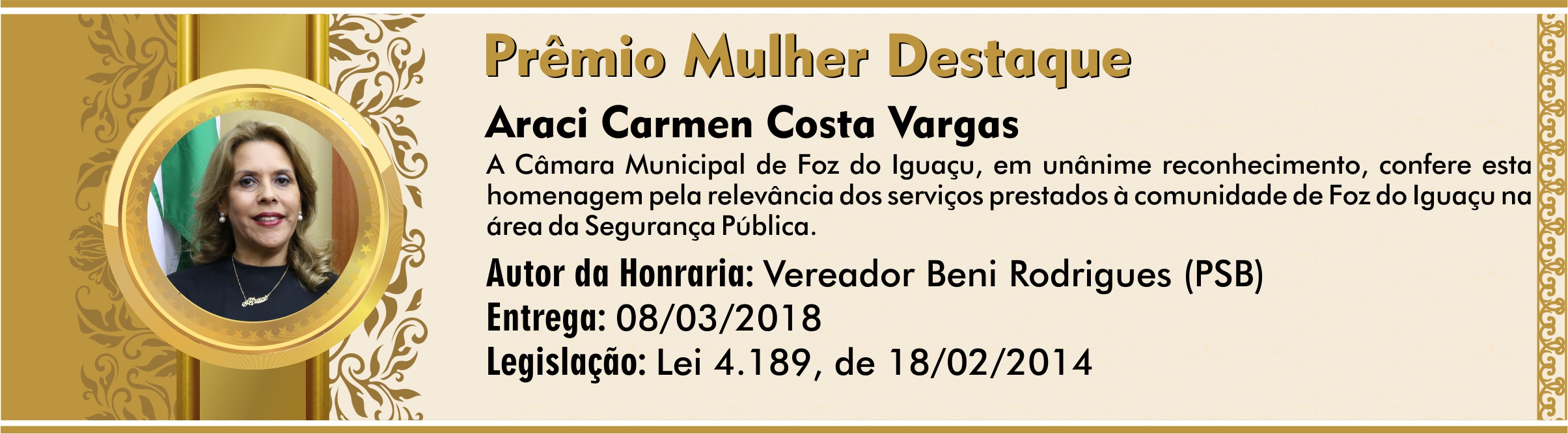 Homenagem pela relevância dos serviços prestados à comunidade de Foz do Iguaçu na área da Segurança Pública.