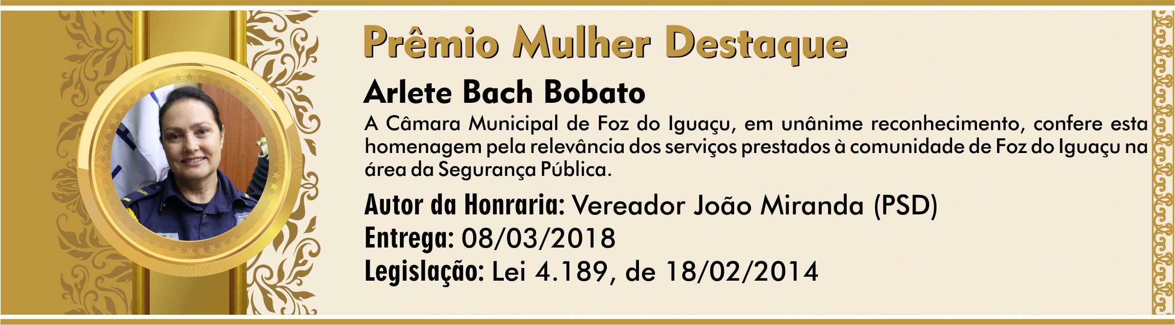 Homenagem pela relevância dos serviços prestados à comunidade de Foz do Iguaçu na área da Segurança Pública.