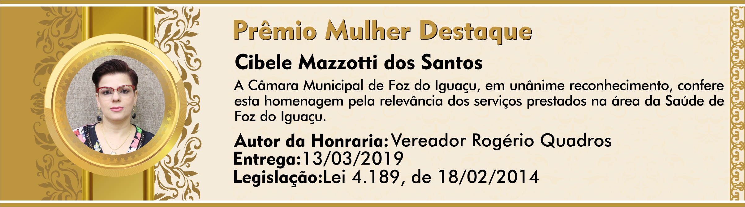 A Câmara Municipal de Foz do Iguaçu, em unânime reconhecimento, confere