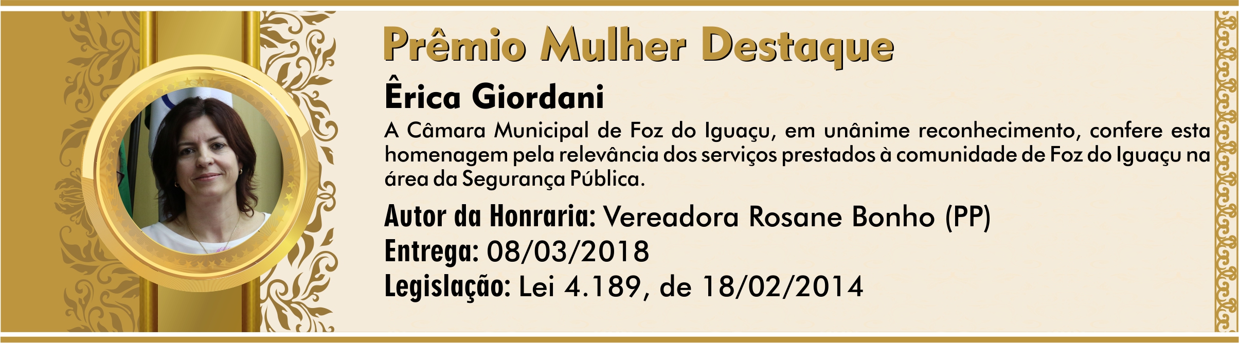 Homenagem pela relevância dos serviços prestados à comunidade de Foz do Iguaçu na área da Segurança Pública.