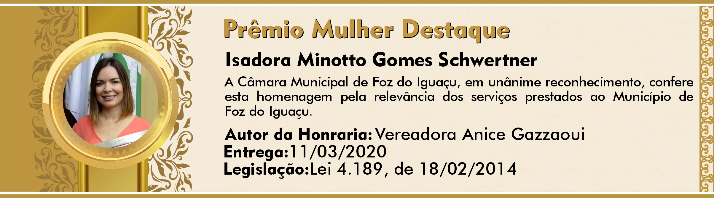 Pela relevância dos serviços prestados à comunidade de Foz do Iguaçu.