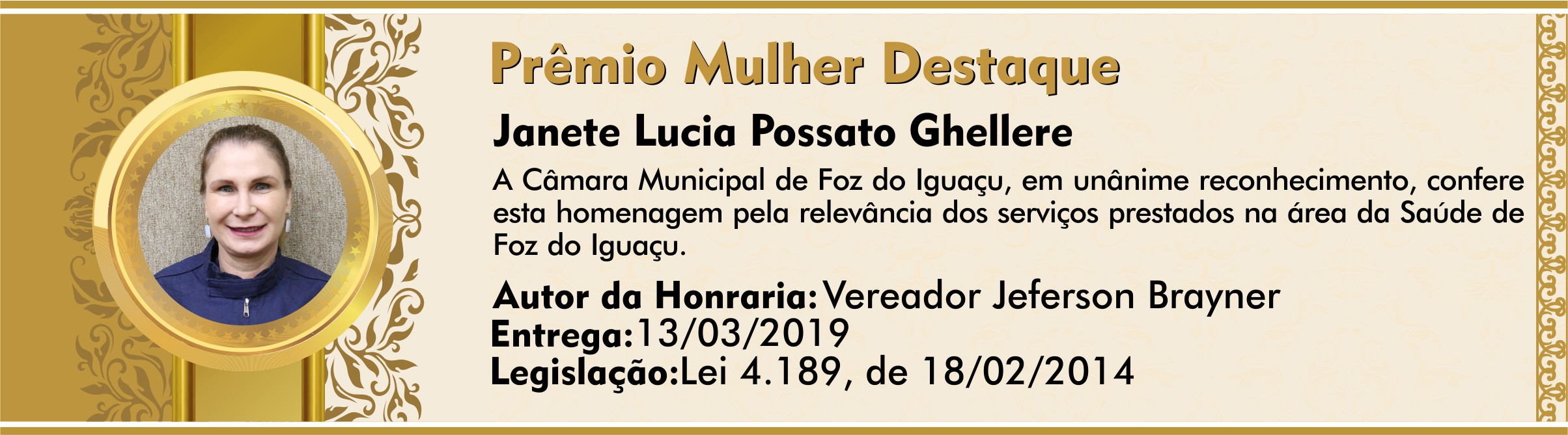 A Câmara Municipal de Foz do Iguaçu, em unânime reconhecimento, confere
