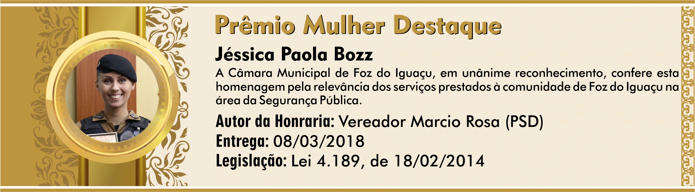 Homenagem pela relevância dos serviços prestados à comunidade de Foz do Iguaçu na área da Segurança Pública.