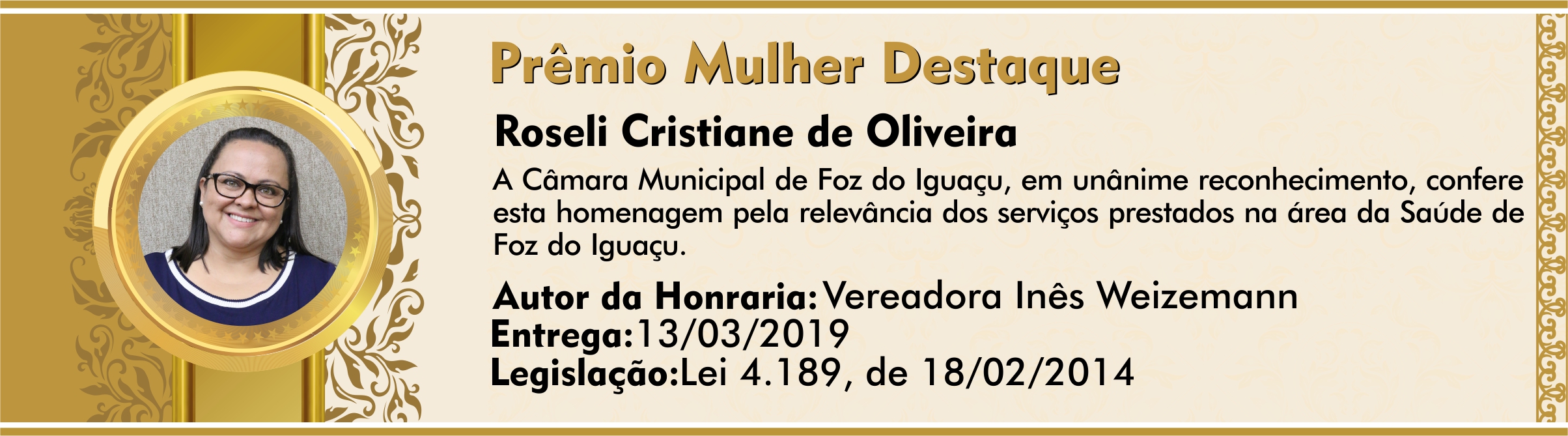 A Câmara Municipal de Foz do Iguaçu, em unânime reconhecimento, confere