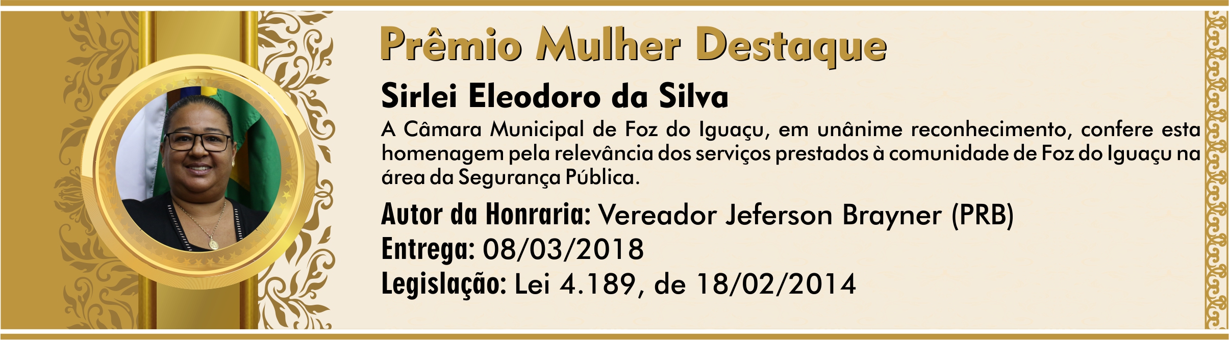 Homenagem pela relevância dos serviços prestados à comunidade de Foz do Iguaçu na área da Segurança Pública.
