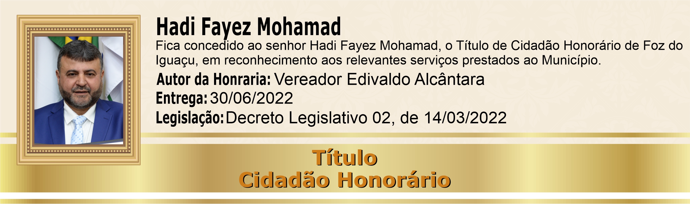 Em reconhecimento aos relevantes serviços prestados ao Município.