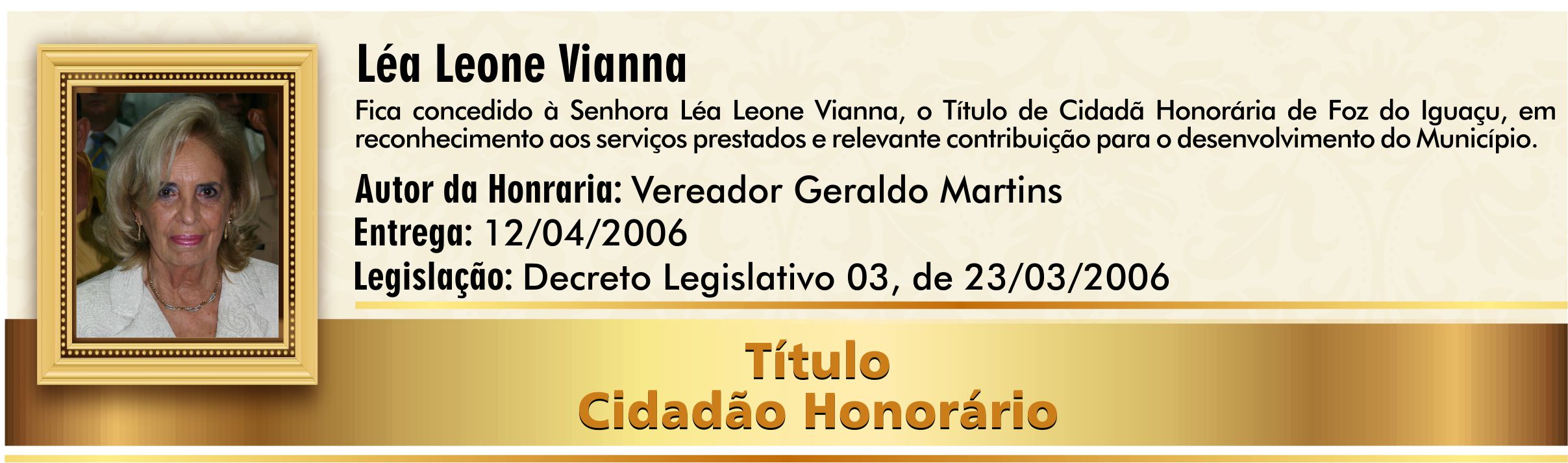 Em reconhecimento aos serviços prestados e relevante contribuição para o desenvolvimento do Município.