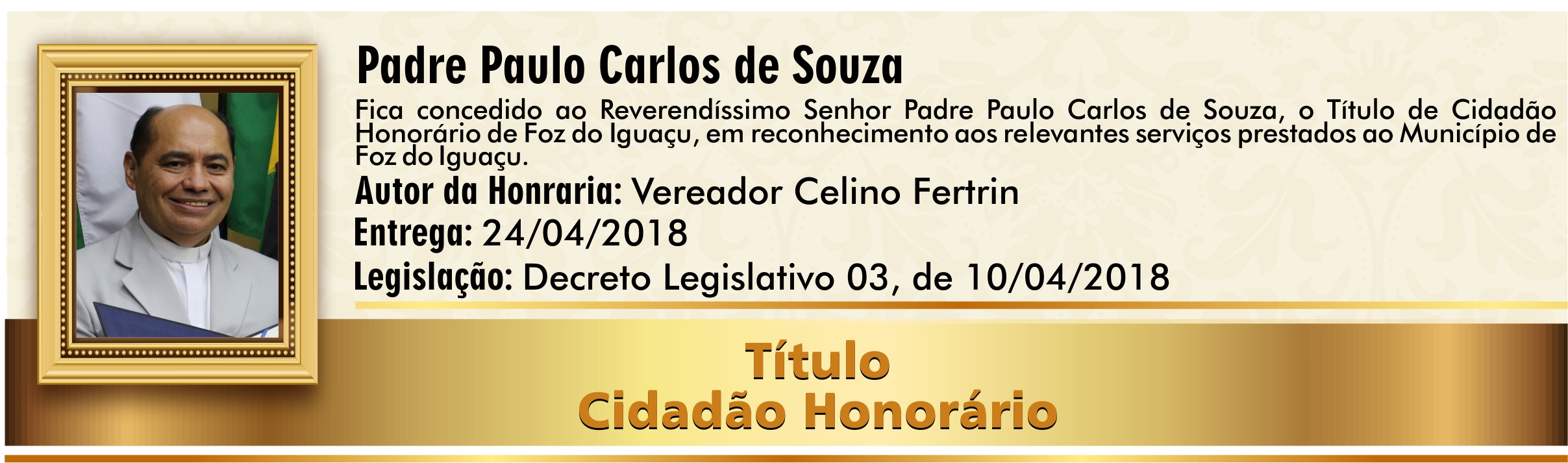 Em reconhecimento aos relevantes serviços prestados ao município de Foz do Iguaçu.
