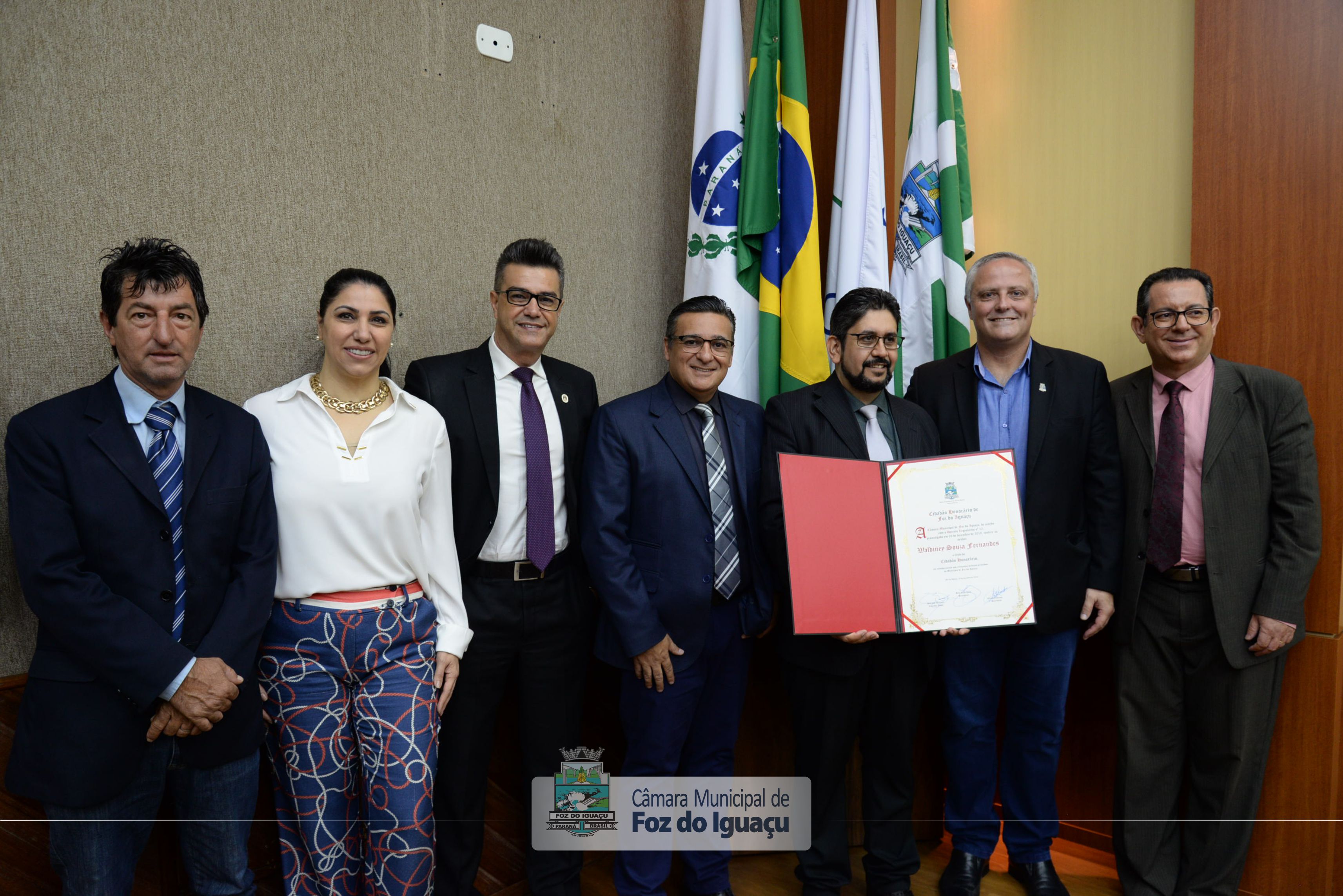 A homenagem foi de autoria do vereador Jeferson Brayner (REPUBLICANOS) e foi entregue no plenário do Legislativo nesta quarta-feira (18). Foto: Diretoria de Comunicação CMFI / Maria Fernanda Setti