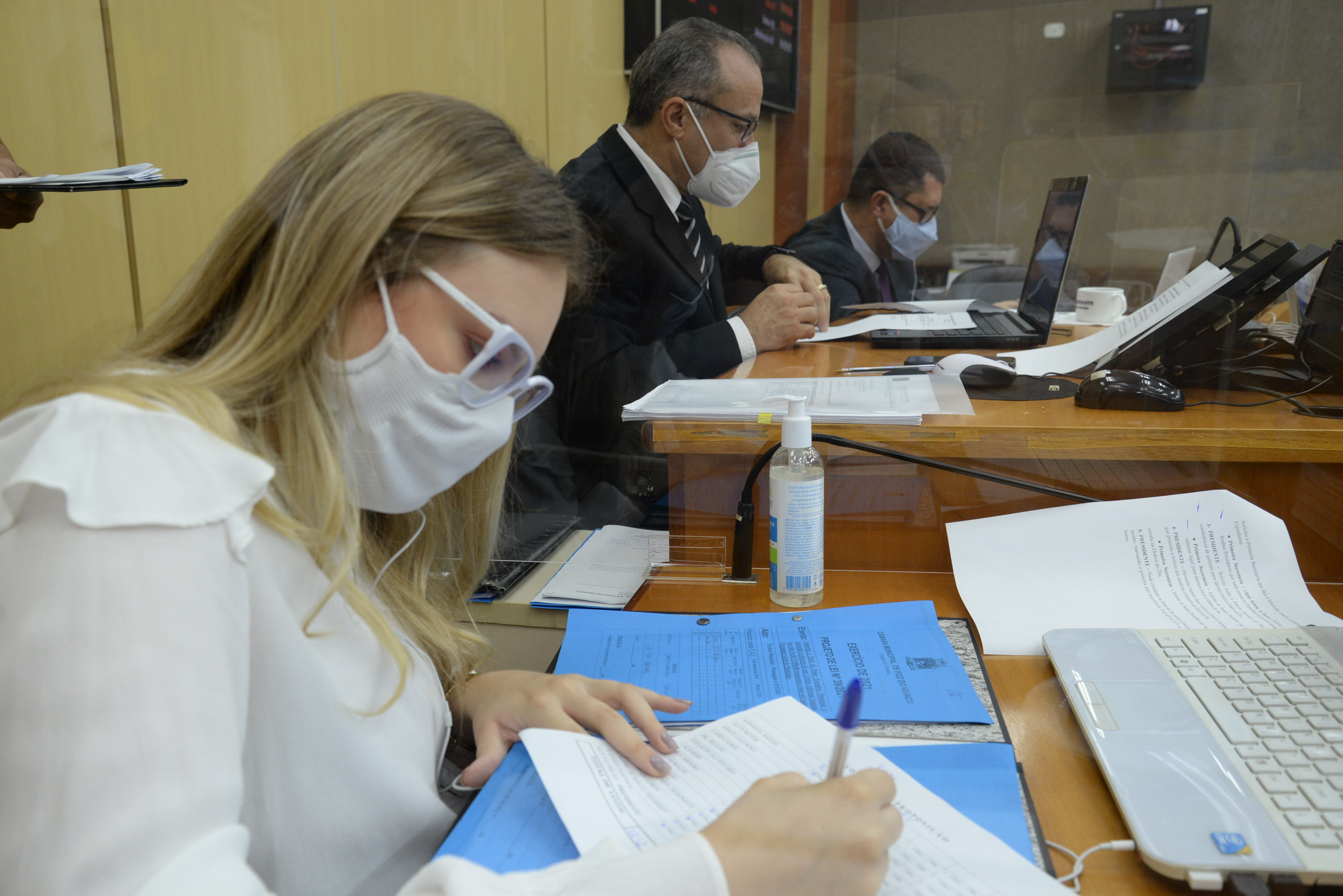 Os vereadores: Yasmin Hachem, Rogério Quadros e Ney Patrício.